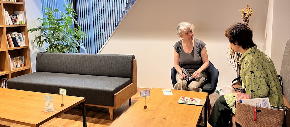 地下鉄烏丸線鞍馬口駅2番出口真上の Creative Spot “COVO” 内のスペースにて外国語レッスンを開催しております。たくさんの本に囲まれた木と緑の居心地良い空間です(フリーのお飲み物あり)
